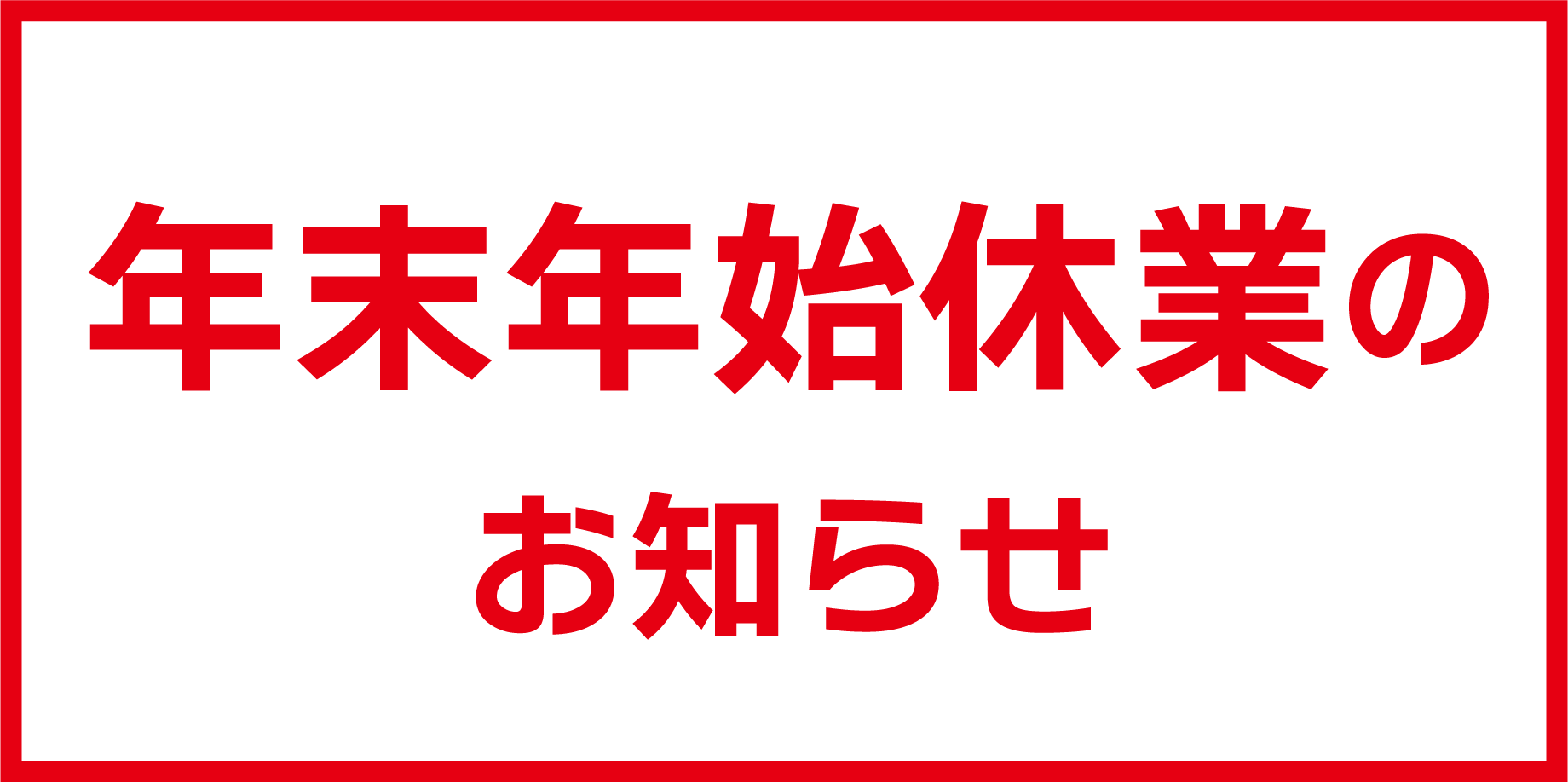 お知らせ年末年始休業は、2025年12月27日(土)~2026年1月6日(火)です。