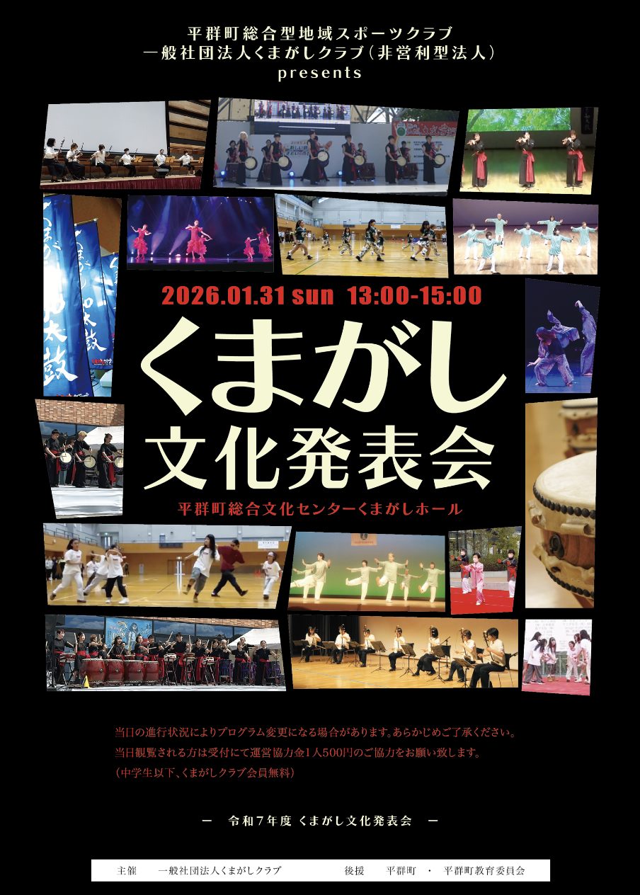 【開催日変更:2/6→1/31】くまがし文化発表会の開催日が変更になりました!